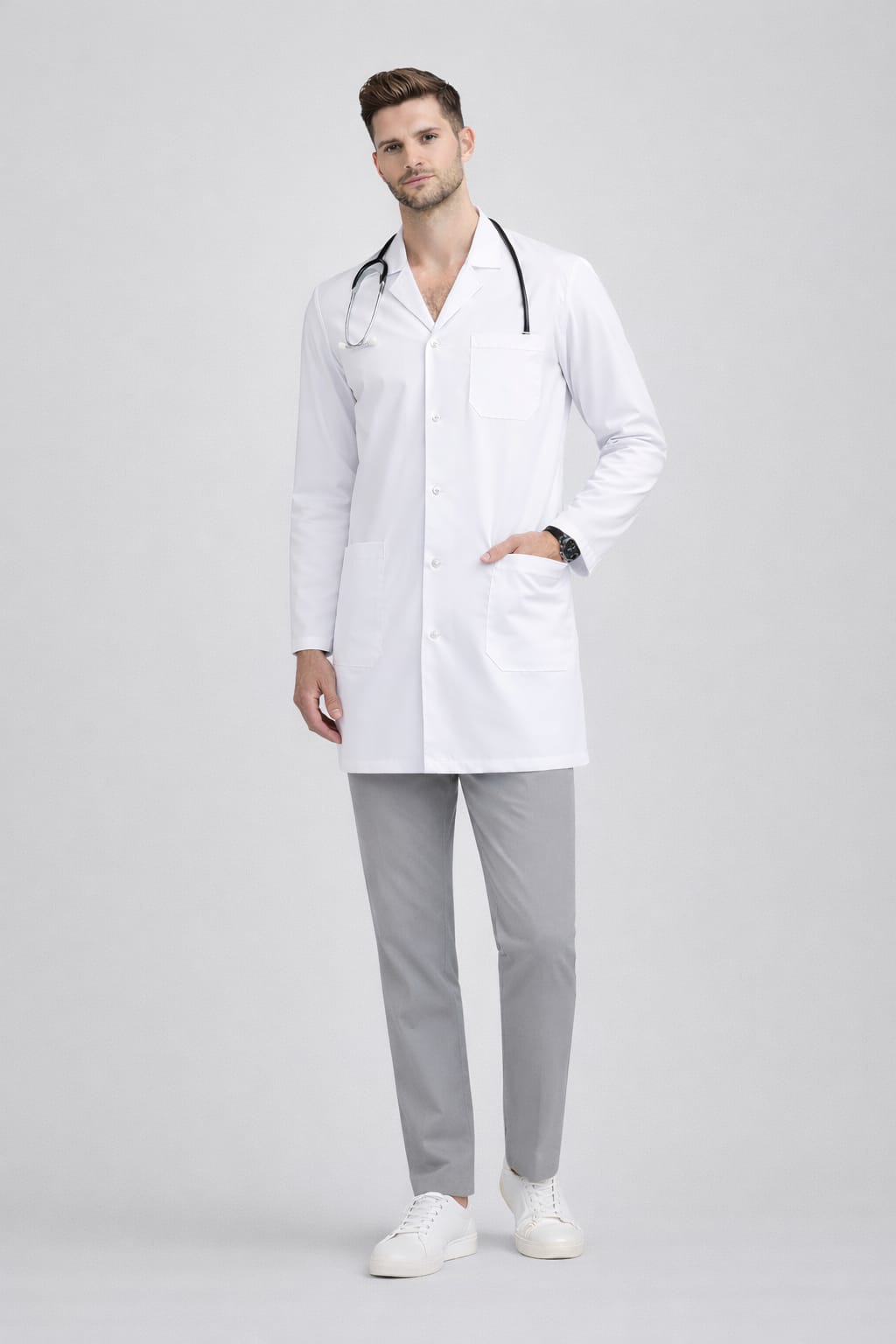 Klasik Yaka Doktor Önlüğü Rahat Kalıp Kullanışlı Kumaş